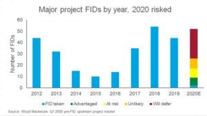 “Some project sanctions will be delated to 2021 and beyond,” he said. “Some will be completely reworked or even put on hold permanently. These include projects with weaker strategic drivers, high breakevens, and/or financially distressed operators.”