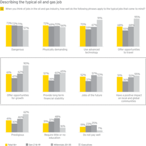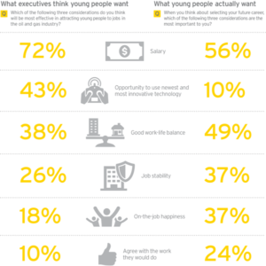 Surveys show that negative perceptions of oil/gas industry is pervasive among younger generations, and companies must adapt to changing workforce needs