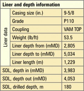 After drilling with a conventional 12 ¼-in. AutoTrak BHA down to 3,873 m, the drilling assembly was pulled out of the hole and replaced with the 9 5/8-in. SDL system, including the 1,228-m, fully centralized liner with specifications (Table 1).